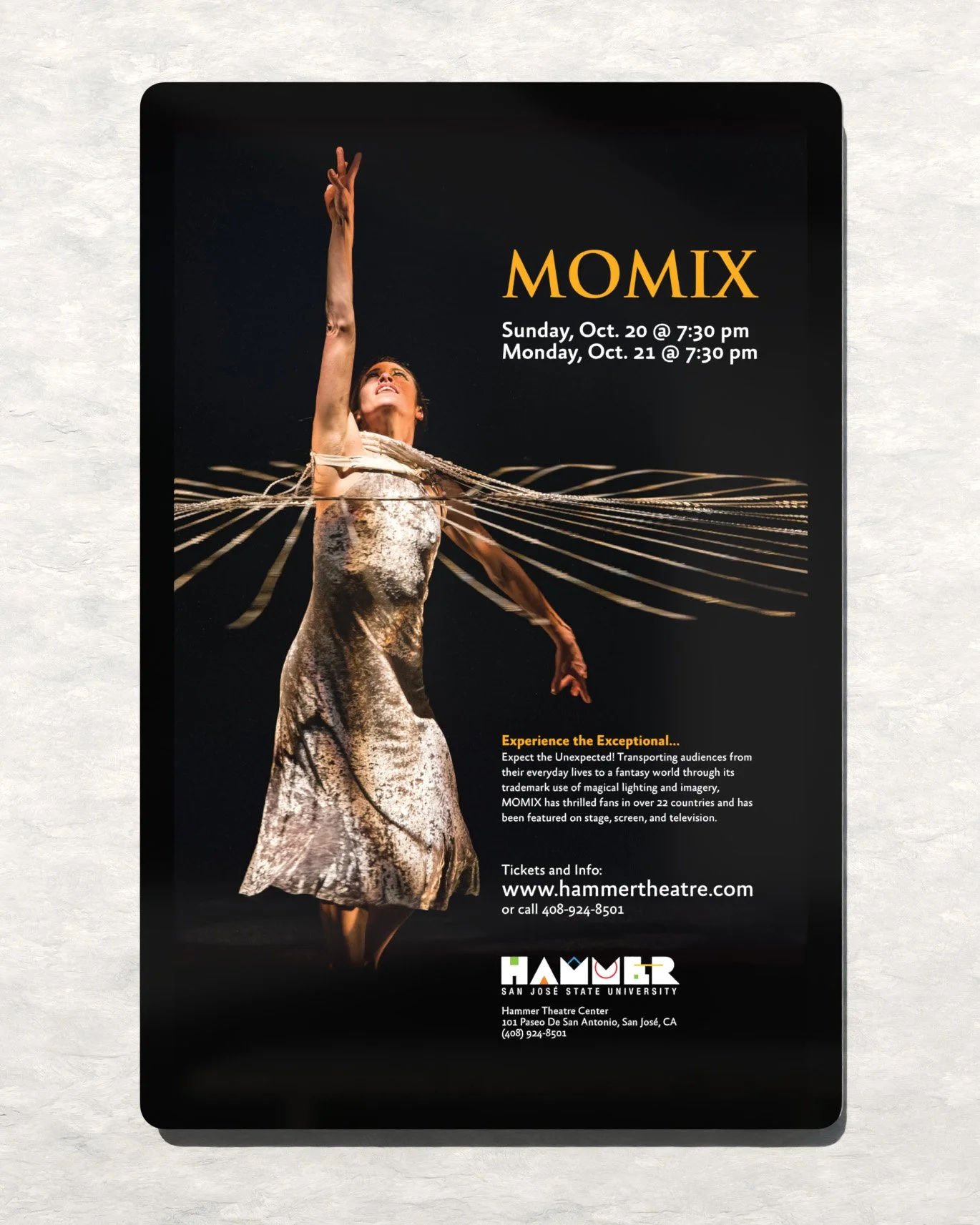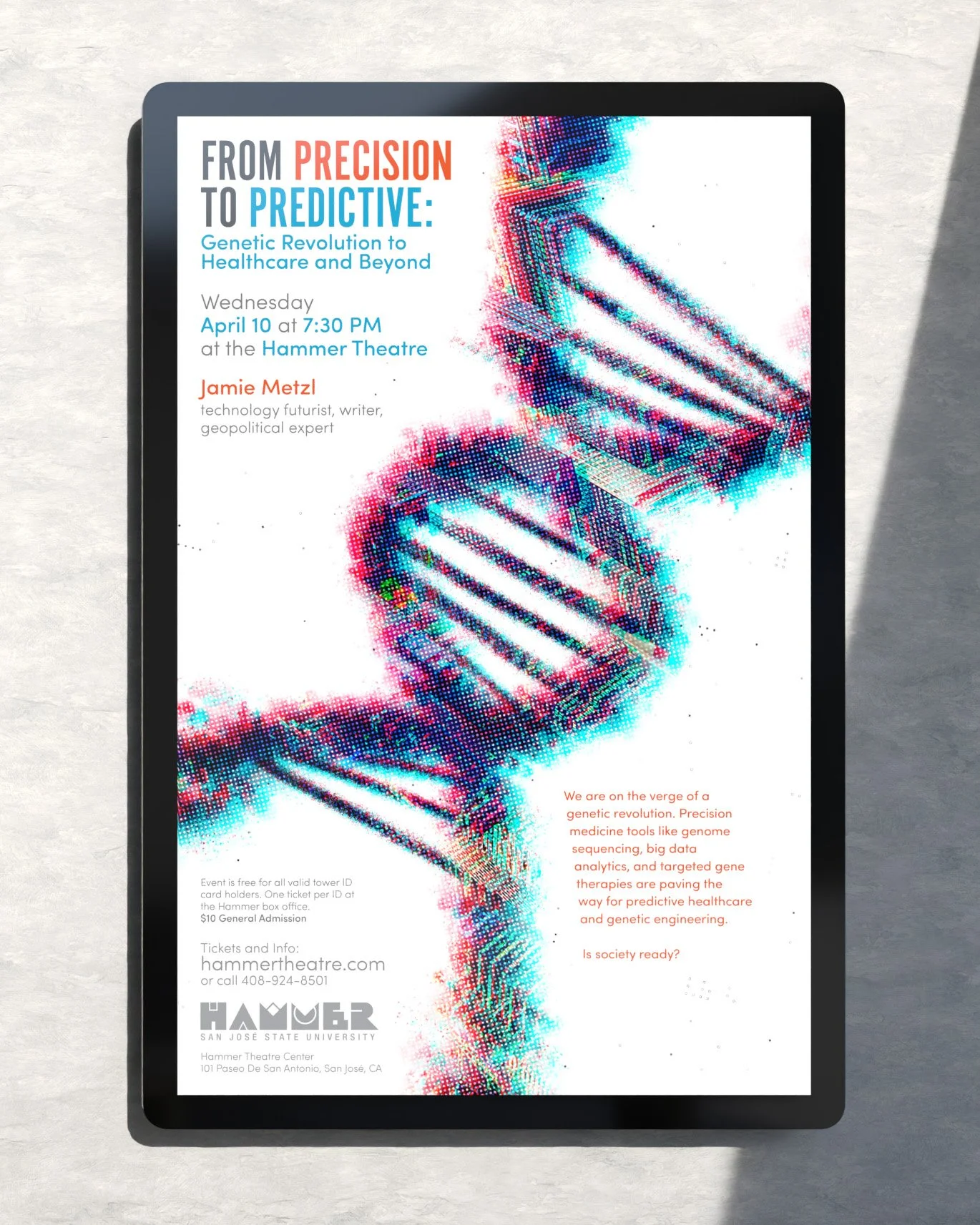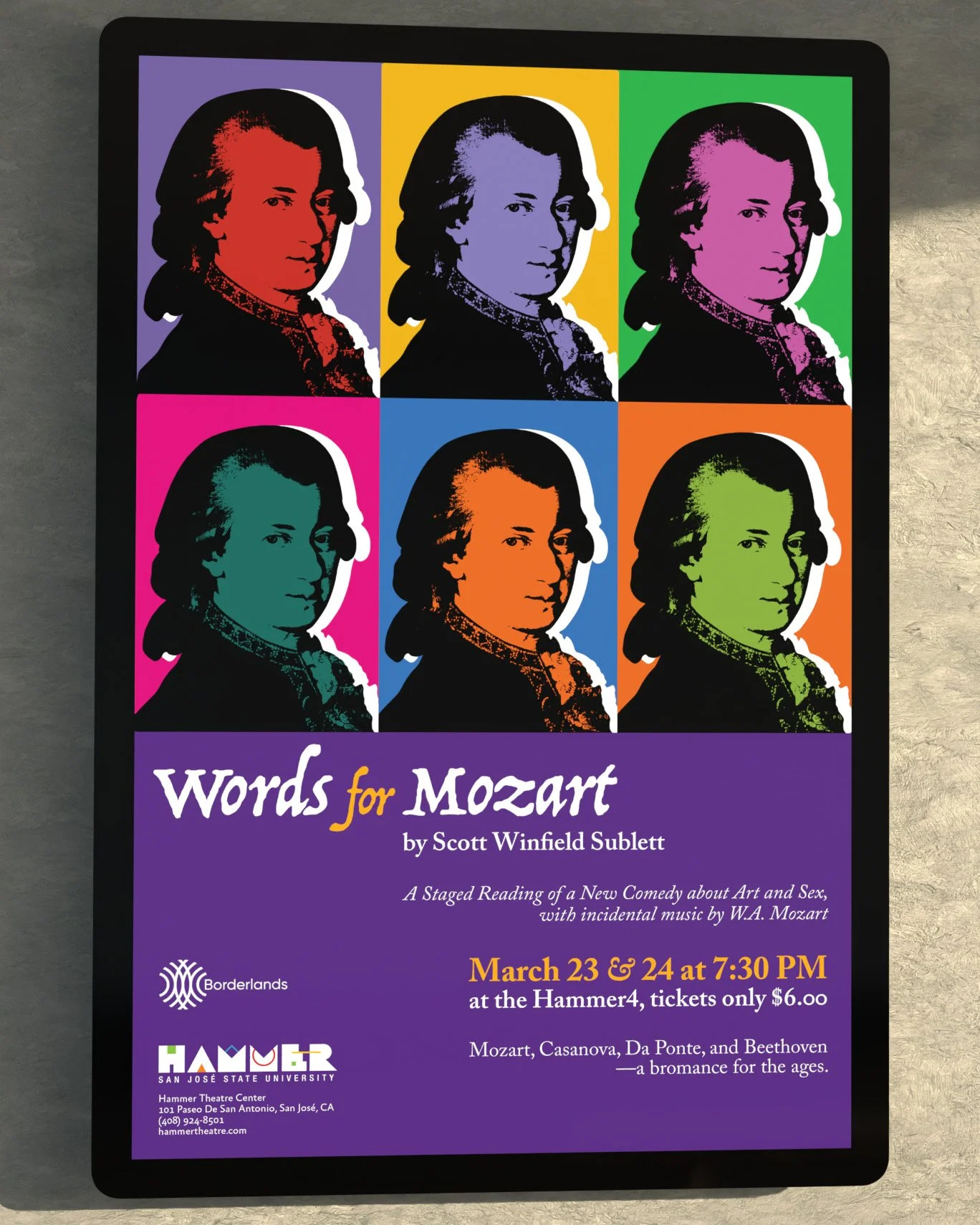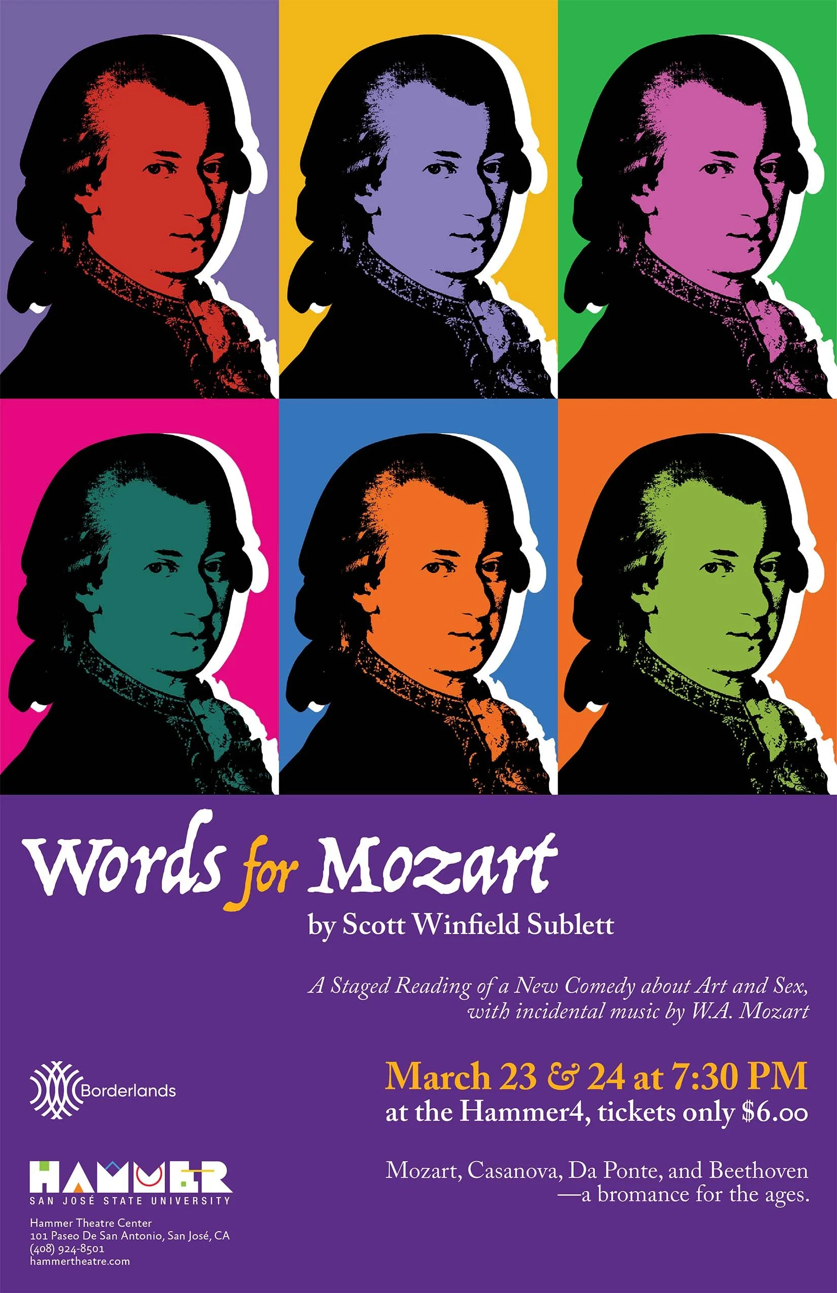 As an intern on the San Jose State University’s Humanities and Arts Marketing team (H&A Marketing) from Fall 2019 to Spring 2020, I and several other members designed various graphics and promotional materials for events hosted by our local Hammer Theatre, a performance venue in downtown San Jose. These are some of the strongest posters I designed for their events.
