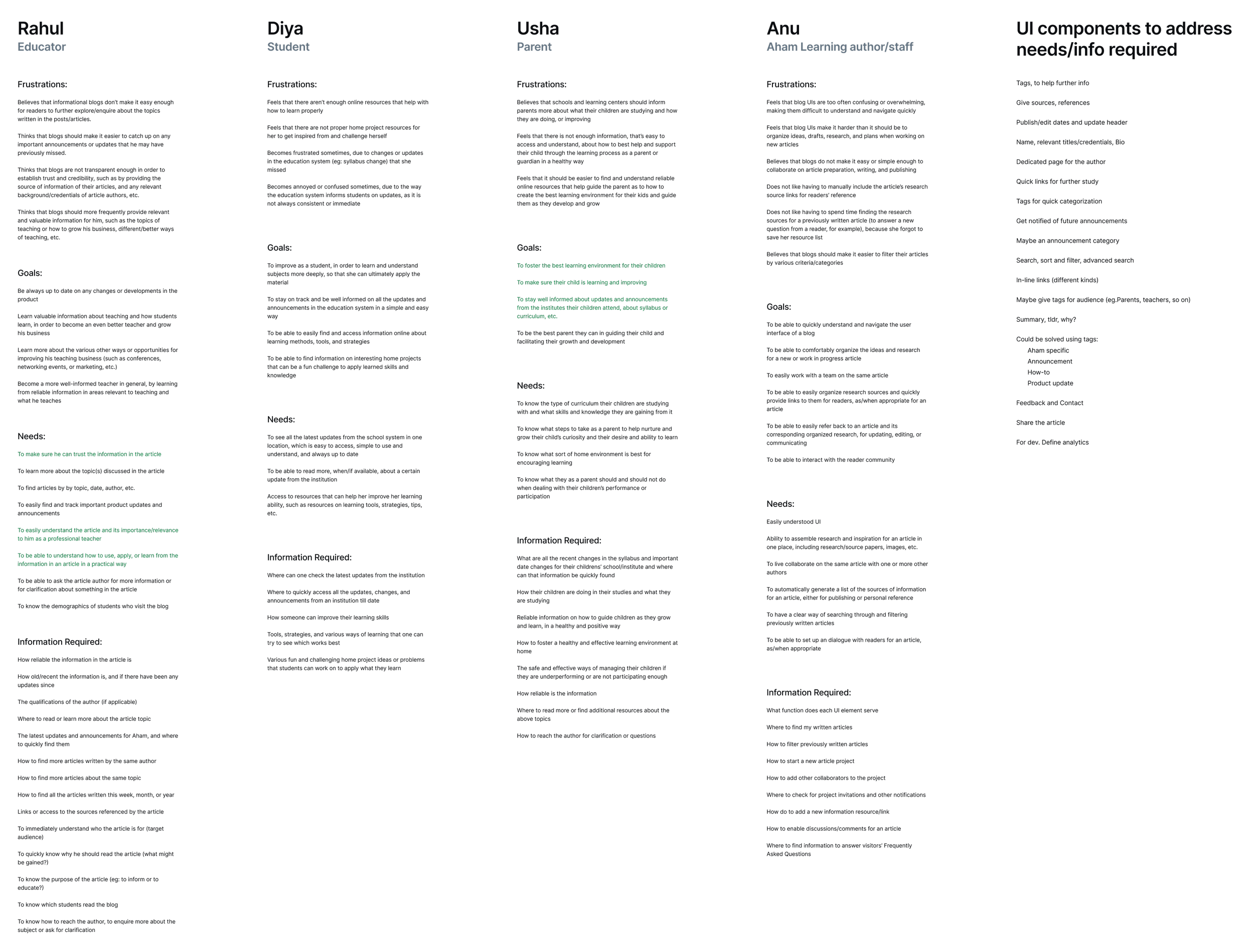 Research and refer to other educational blogs; analyze their strengths and weaknesses, and come up with design criteria that addresses the personas.