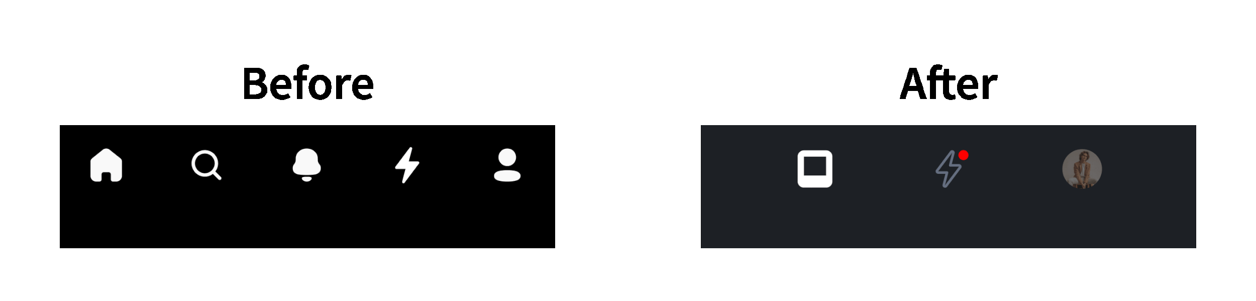 Virtually all screens of the app were redesigned to be simpler and easier to navigate. For example, we simplified the primary navigation bar at the bottom of the screen, to having just 3 main pages instead of 5: