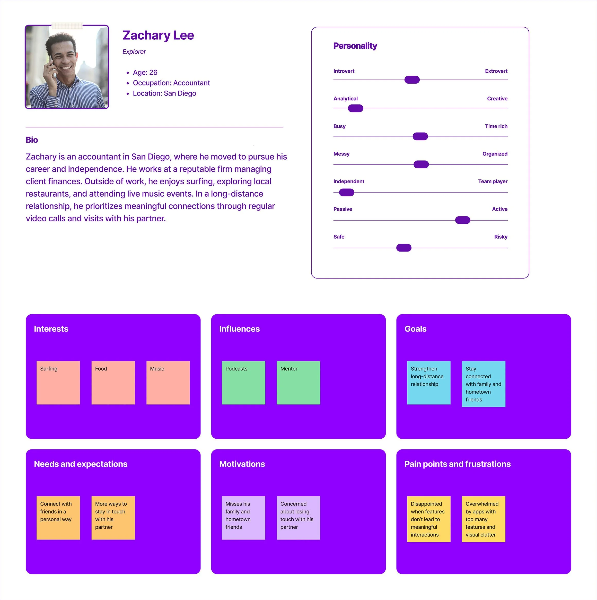Users like Zachary want to connect with their friends and family in ways different from most other social media apps. In addition, they value meaningful interactions and find most popular apps overwhelming with features and clutter.